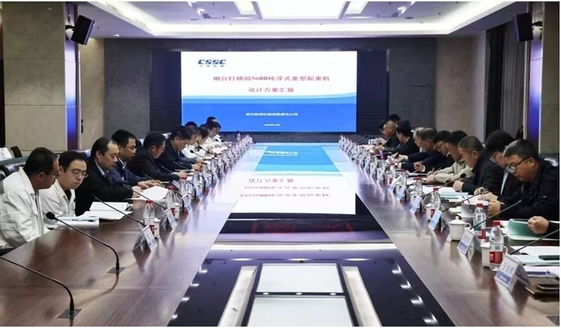 10月30日,中船武汉船机组织召开烟台打捞局5000吨级起重打捞工程船项目5600吨起重机设计方案评审会。烟台打捞局副局长都光明、中船武汉船机副总经理胡发国出席评审会。